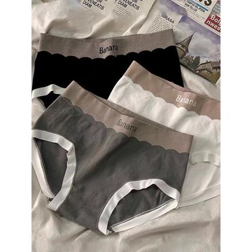 日系純色簡約莫代爾無痕內褲女中腰薄款透氣一片式波浪邊三角褲頭