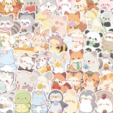 50張Q版動物貼紙卡通可愛貓咪熊貓手機殼筆記本行李箱貼畫ipad電腦貼畫防水