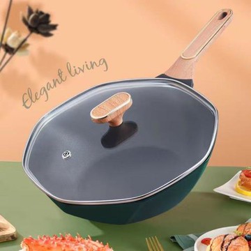 點我下載精鐵家用炒鍋不粘鍋多功能便攜不挑爐灶平底不沾八角鍋炒菜鍋通用