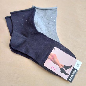 外貿出口德國老人松口襪女襪卷邊棉鑲鉆黑色淺灰色一組吸汗透氣