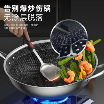 304不銹鋼雙面屏蜂窩炒鍋無涂層平底不粘炒鍋電磁爐燃氣通用鍋具