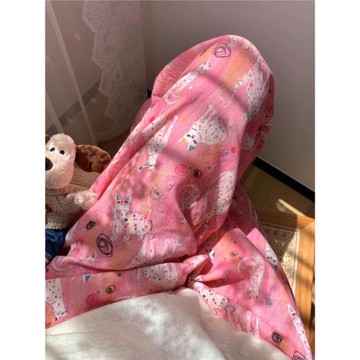 春夏涂鴉彩點貓貓純棉雙層紗布居家褲女士卡通可愛寬松睡褲長褲