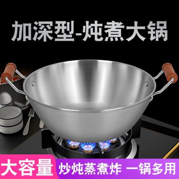 老式雙耳炒鍋平底不銹鋼鍋家用炒菜鍋煲湯燉鍋無涂層不粘鍋電磁爐