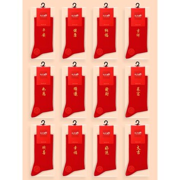 女士本命年大紅色棉襪男士冬季長筒運動男襪馬年發財襪純棉紅襪子
