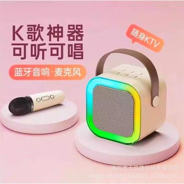 新款無線麥克風兒童K歌藍牙音箱卡拉OK一體機音響藍牙音箱KTV炫彩