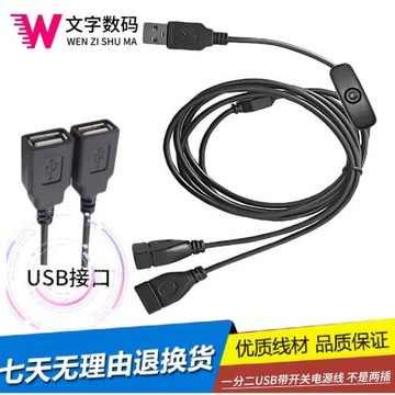 1米usb一公二母多頭充電線沖手機LED氛圍燈散熱器線電源線 有開關