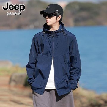 JEEP SPIRIT冰絲防曬衣男士夏季薄款透氣速干連帽UPF50+防曬服男