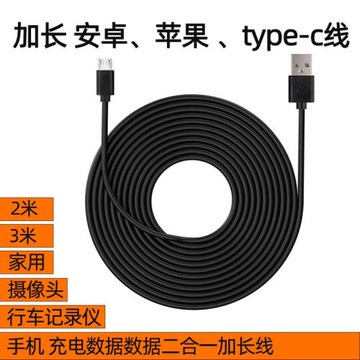 適用于蘋果安卓Type-C黑色2米3米加長行車記錄儀攝像頭手機充電線