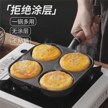 鑄鐵加深四孔雞蛋漢堡鍋無涂層不粘煎蛋鍋蛋堡模具蛋餃鍋漢堡機