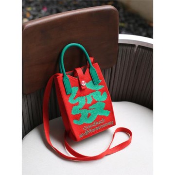 女士紅色針織斜挎手機包手提包迷你時尚外出跑步過年紅包麻將包包