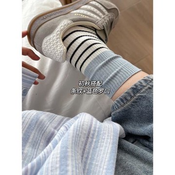 無骨堆堆襪女春秋運動長筒長襪修飾腿型早秋韓版拼接條紋襪子中筒