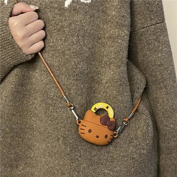 gurao 可愛卡通Kitty貓斜挎繩適用airpodspro2蘋果無線藍牙耳機套airpods1/2硅膠新款airpods4防摔防丟保護套