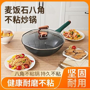 麥飯石不粘鍋家用炒鍋八角炒菜鍋不沾平底鍋電磁爐專用燃氣灶適用