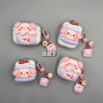 可愛立體貼片適用于UGREEN綠聯S5粉色豬頭藍牙充電倉保護軟殼HiTune S5卡通草莓小豬萌系透明防摔無線耳機套