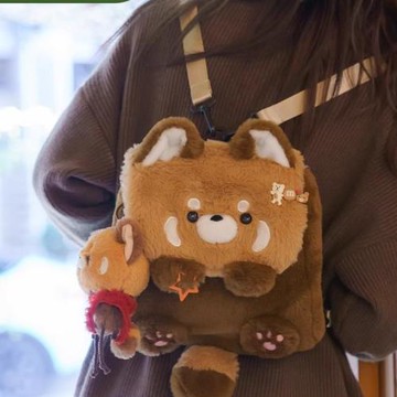 新年小浣熊雙肩背包學生單肩三花貓斜挎背包小熊貓公仔包玩偶書包