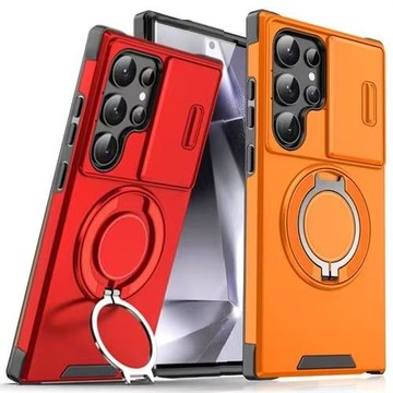 高級可旋轉指環適用三星S25ULTRA滑蓋鏡頭S23+PLUS推拉窗S26U車載磁吸Galaxy20FE帶支架S24UTRAL套A17A56edge