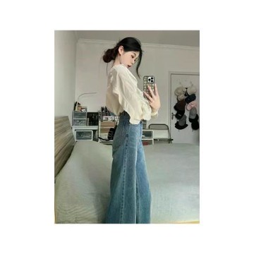 楊楊YANGRUOYU【藍城舊刊】闊腿牛仔褲女寬松直筒顯瘦復古休閑褲