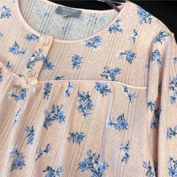 春秋季圓領寬松休閑針織棉鏤空透氣面料胖mm大碼睡裙家居裙長裙