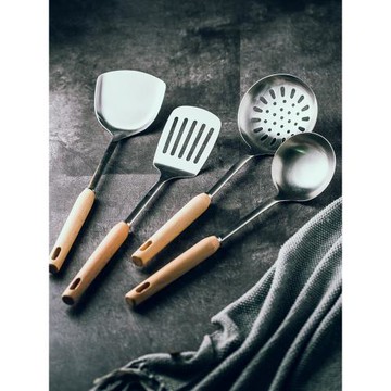 304不銹鋼鍋鏟套裝家用木柄鐵鍋鏟廚具湯勺鏟子炒菜廚房勺子漏鏟