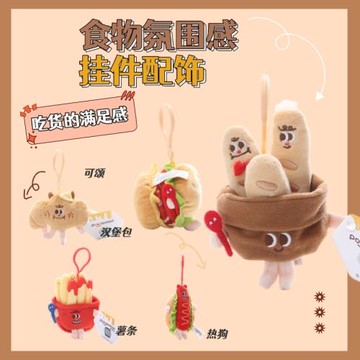 漢堡薯條可頌牛角包食物毛絨背包掛件可愛搞怪表情包個性包包掛飾