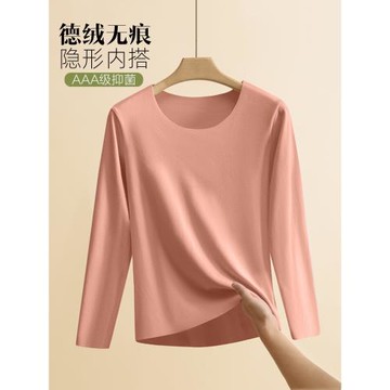女秋冬德絨無痕薄絨加厚長袖T恤上衣休閑保暖內搭圓領秋衣打底衫