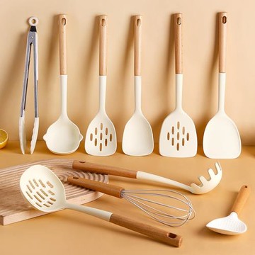硅膠廚具套裝不粘鍋廚房鍋鏟耐高溫烹飪湯勺漏勺櫸木柄家用鏟子