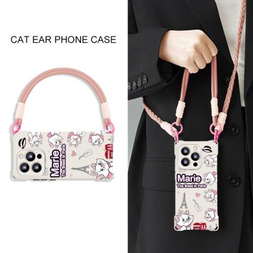迪士尼正版適用蘋果16Pro手機殼瑪麗貓新款iPhone16promax斜挎背包式13高級感小眾女14Pro硅膠保護套12腕帶女
