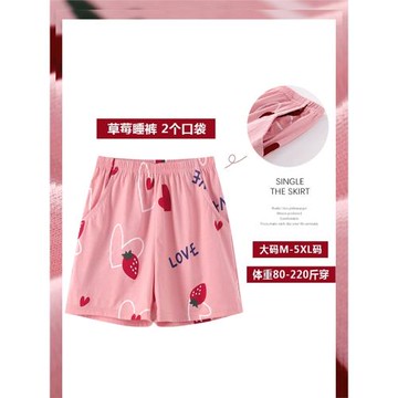 睡褲女夏季短褲純棉薄款寬松大碼200斤休閑居家可愛全棉家居褲