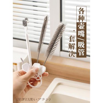 日本 多功能壺嘴刷 清潔刷4件套 奶瓶刷/茶壺清潔刷/杯刷/杯蓋縫隙清潔刷