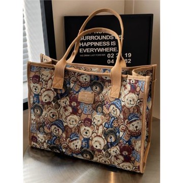 卡通小熊帆布包包女大容量短途旅行手提購物袋外出通勤單肩托特包