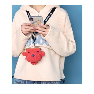 三色補丁零錢包女新款AirPods保護套可愛掛脖手機有線耳機收納包