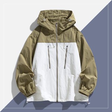 卡帝遜拼接撞色外套男士潮流百搭寬松休閑防嗮連帽皮膚衣痞帥夾克