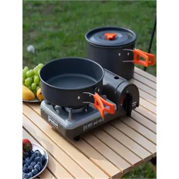 可折疊收納戶外野炊具套鍋燒水壺煎鍋湯鍋打火爐收納包轉接頭用品