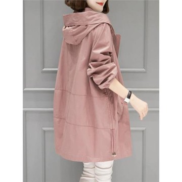 寬松休閑連帽風衣外套女春秋季2025新款大碼時尚減齡上衣女中長款