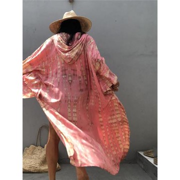 新款薄款連帽開衫長款防曬外套女異域風INS披肩風衣海邊泳衣罩衫