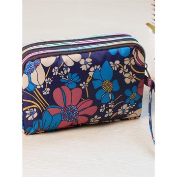 時尚印花女手拿三層長款手機包錢包花布防水大容量零錢包手挽腕包
