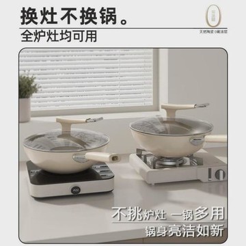 新款陶瓷炒鍋不粘鍋0氟鈦鍋陶瓷鍋家用炒菜鍋電磁爐專用官方旗艦
