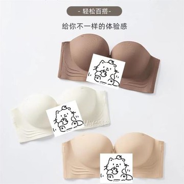 水紋前扣新款聚攏錦綸韓式無肩帶無鋼圈文胸傳統型薄模杯內衣文胸