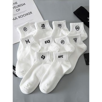 春夏季短襪男士中筒襪純棉吸汗防臭運動純白刺繡短筒襪子女ins潮