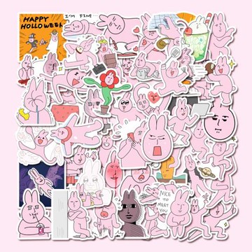 卡通搞笑粉色小兔myfriend抽象貼紙電腦ipad防水貼畫手機行李箱貼