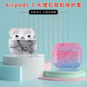 KUAIJIEWEI大理石紋適用Airpods3代耳機殼防摔亮面PC硬殼蘋果無線藍牙耳機套