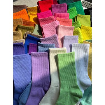 多巴胺彩色棉襪純色中筒襪男女襪子學生襪簡約運動長筒堆堆襪子潮