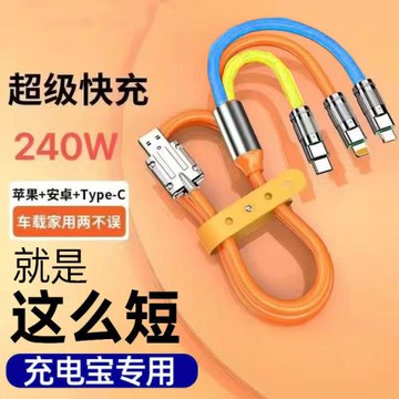 短款充電寶數據線0.5米三合一快充電線一拖三二拖三手機充電線66w適用于蘋果華為數據線安卓平板ipad多功能線