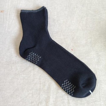 外貿黑色男女雙針襪子老人松口襪短筒復古短襪純色點膠防滑