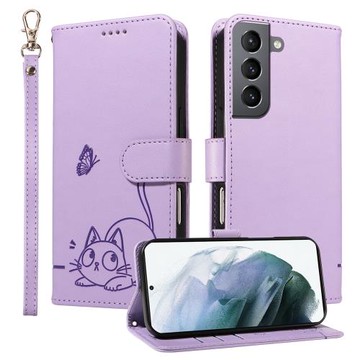 適用于三星S21翻蓋S20浮雕Ultra保護套FE卡通+貓狗5G壓花4G手機殼Plus仿皮2022純色皮套可愛女款防摔送掛繩