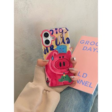 趣味可愛涂鴉小豬帶旋轉磁吸支架適用于iphone16pro手機殼蘋果15保護套14個性13創意12新款16promax高級感max