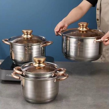 430不銹鋼禮品套裝鍋具加厚電磁爐直角湯鍋平底煎鍋單柄奶鍋三件