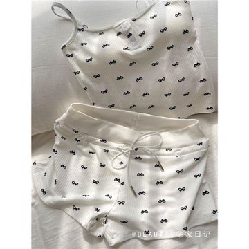 韓版甜美蝴蝶結吊帶睡衣女夏款2025新款小背心短褲家居服套裝外穿