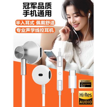 耐用有線耳機typec接口半入耳帶收納高音質降噪聽歌通話手機通用