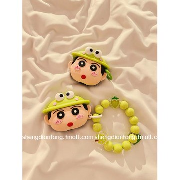 點我下載可愛卡通綠色青蛙小新適用于蘋果Airpods4保護套2/3代無線藍牙耳機軟殼Airpods pro創意硅膠女新款防摔鏈條軟